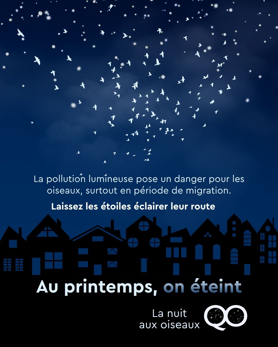 La pollution lumineuse a des impacts importants sur les oiseaux, particulièrement lors de la migration. Ce printemps, éteignons nos lumières pour laisser les étoiles éclairer leur route!